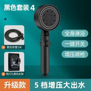 增压花洒喷头套装洗澡热水器莲蓬头加压家用淋浴超强浴霸 黑武士