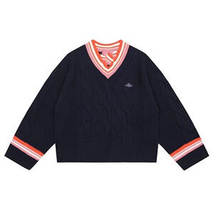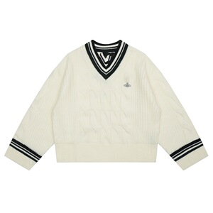 25ss跨境小众vv星球太后羊毛衫开衫毛衣男女情侣同款圆领V领毛衣