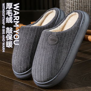 棉拖鞋男士秋冬季2025新款家居室内厚底防滑加绒保暖包头棉拖女士