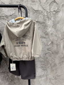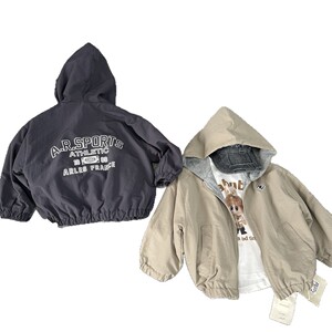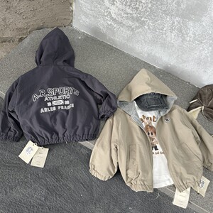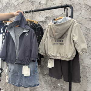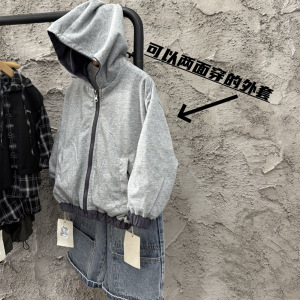 25秋季儿童美式两面穿连帽外套男童女童拼色字母拉链开衫双面夹克