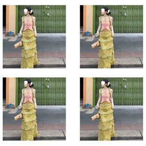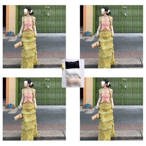 度假马卡龙撞色花边吊带连衣裙/官搭开衫套装褶皱拼接印花