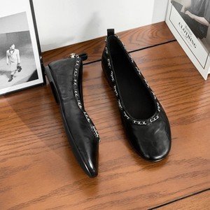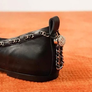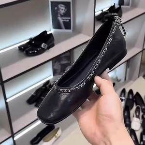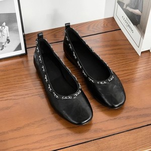 时尚休闲百搭2025年新款圆头浅口法式方头平底链条软底玛丽珍单鞋