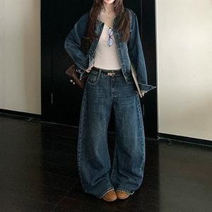 Skk Store Jennie1时装周 俏皮复古水洗渐变柔软牛仔外套长裤套装