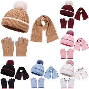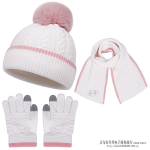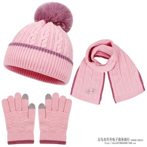 跨境亚马逊儿童帽子围脖手套三件套秋冬条纹新款男女童针织帽