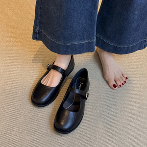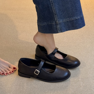羊皮版~真皮复古圆头一字带扣玛丽珍鞋女韩版百搭浅口单鞋小皮鞋