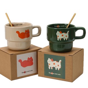原创高颜值小狗叠叠可爱卡通陶瓷ins风咖啡杯情侣马克杯杯子早餐