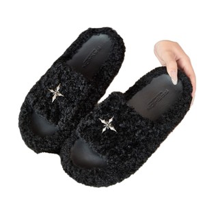 厚底十字徽章毛毛拖鞋女外穿2025新款冬季毛绒高级感复古黑色增高