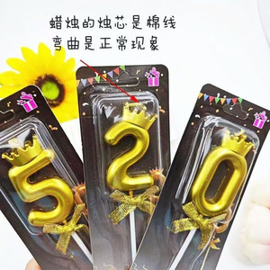 生日蜡烛七夕皇冠丝带蝴蝶结数字蜡烛金色0-9批发节日装饰蜡烛