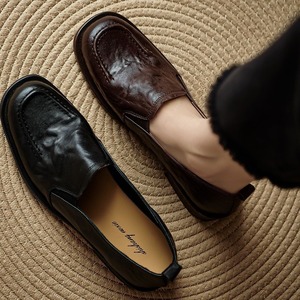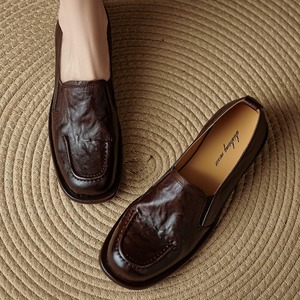 小皮鞋2025新款复古风软糯舒适圆头低跟粗跟深口一脚蹬单鞋女真皮