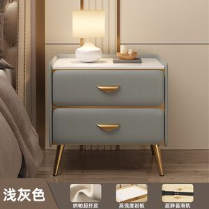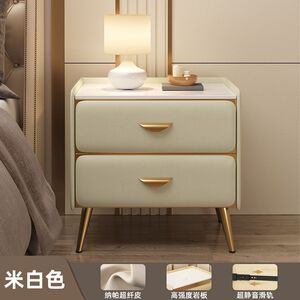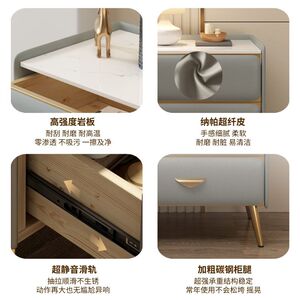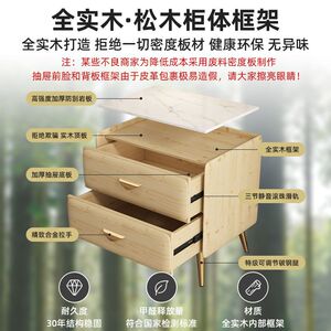 全实木床头柜简约现代床边柜轻奢高级感岩板小柜子卧室床头收纳柜