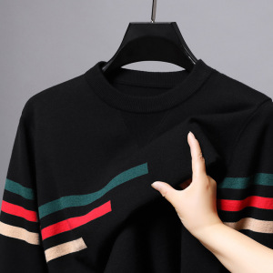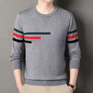 圆领针织衫男装提花 秋冬款男士毛衣中年长袖套头打底衫6码