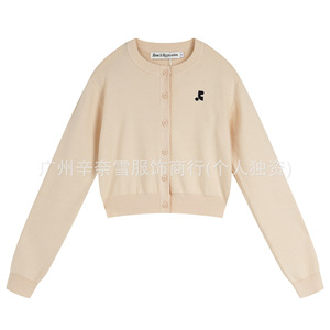 韩国restandrecreation针织衫外套女短款修身RR刺绣春秋开衫长袖