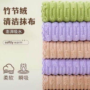 跨境专供洗碗巾珊瑚绒竹节毛巾挂式擦手巾厨房清洁手帕不掉毛方巾