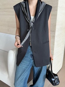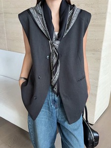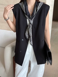 配丝巾V领无袖西装马夹外套女2025秋季新款宽松显瘦休闲马甲上衣
