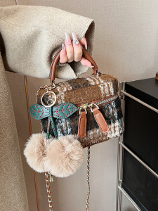 精致超火小众毛呢包包女2025新款时尚百搭斜挎包迷你手提包小拎包