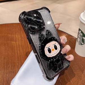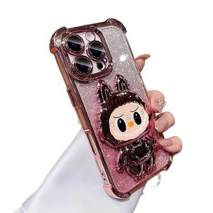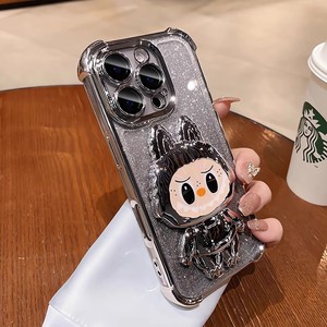 拉布布补妆镜支架适用苹果17手机壳电镀四角防摔iPhone16全包软套