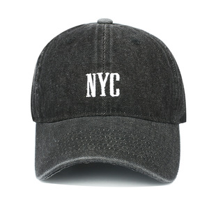 跨境牛仔水洗NYC刺绣棒球帽女时尚复古弯檐鸭舌帽男户外遮阳帽子