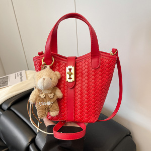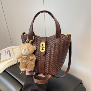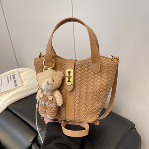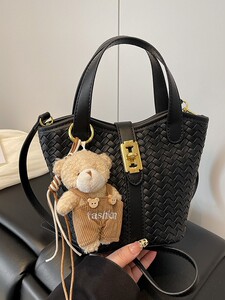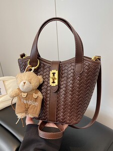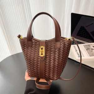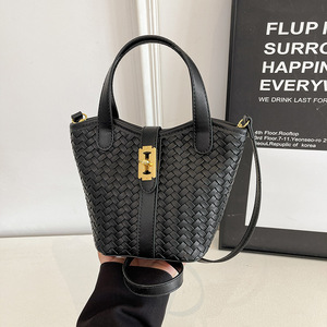 跨境时尚编织水桶包2025新款超火手提包潮小众设计复古百搭单肩包