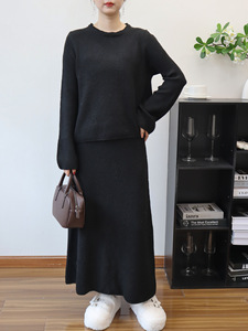 2025秋冬新款气质毛衣套头针织半身裙两件套女纯色时尚毛衣套装女