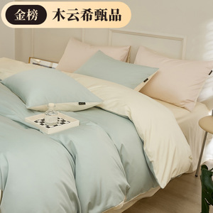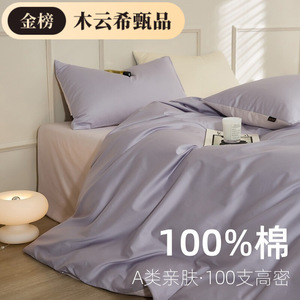 A类100支纯棉四件套裸睡新疆长绒棉简约纯色全棉被套床单床上用品