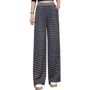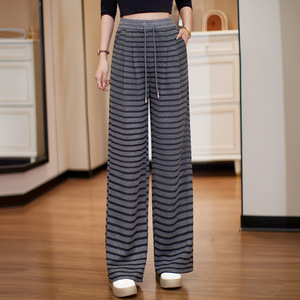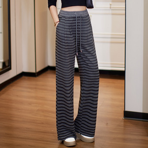 条纹阔腿裤女2025春秋季新款松紧腰抽绳宽松休闲运动百搭直筒裤子