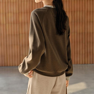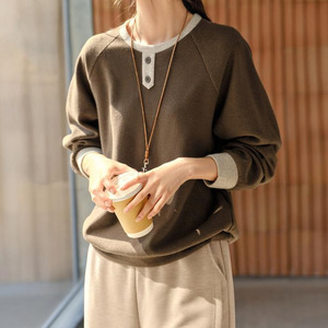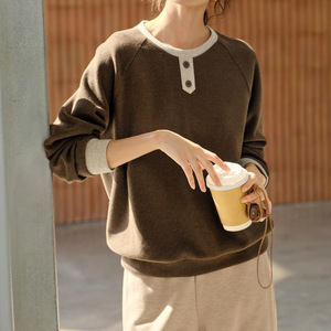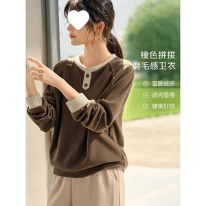 美拉德撞色拼接磨毛绒感卫衣女秋季新款宽松休闲运动上衣