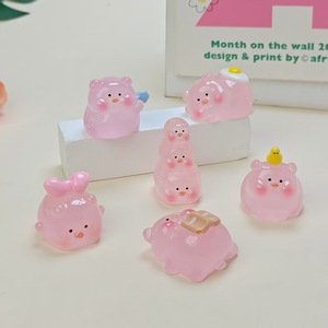 夜光立体中号树脂小粉猪手工装饰桌面车载小摆件高级感工艺品公仔