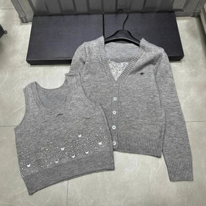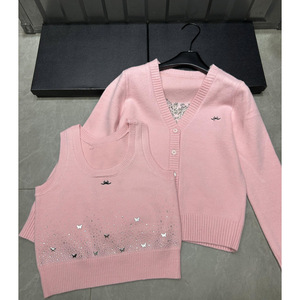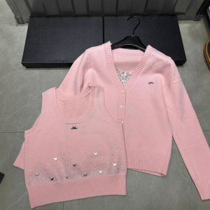 25年秋季新款迪家字母花卉蝴蝶针织长袖开衫+无袖背心女两件套装