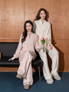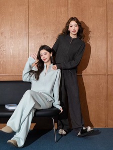 纯色拉链立领毛衣外套+针织阔腿裤两件套2025秋冬新款毛衣套装女