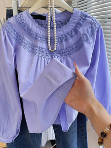 法式简约复古镂空木耳花边精致上衣2025年夏新款时尚气质紫色小衫