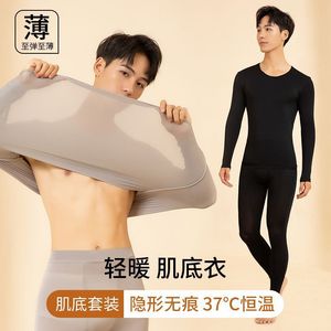 无痕发热37度超薄保暖内衣男恒温肌底美肤衣打底长袖秋衣秋裤套装