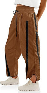亚马逊新款休闲宽松抽绳桶裤女装宽松运动裤条纹街头潮流嘻哈裤