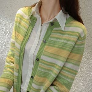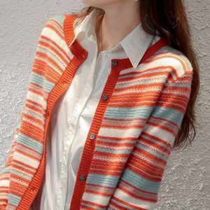 甜美修身新款针织开衫女圆领条纹上衣宽松毛衣外套短款外搭韩版潮