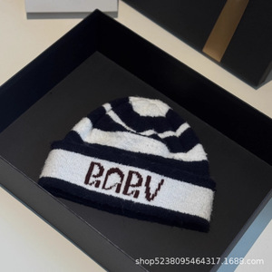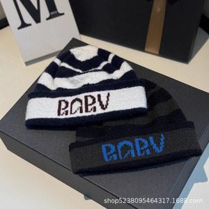 欧美跨境毛线帽保暖字母2025新款加厚保暖大头围显脸小针织帽冷帽
