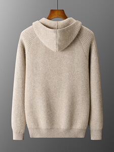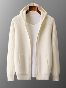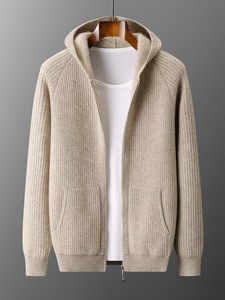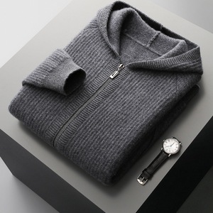 秋冬新款100%纯羊毛连帽开衫男士加厚减龄羊毛外套宽松休闲针织衫