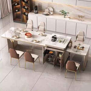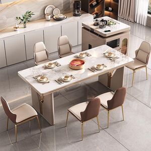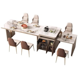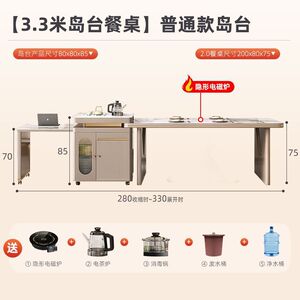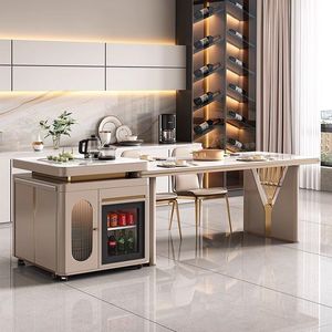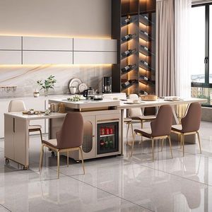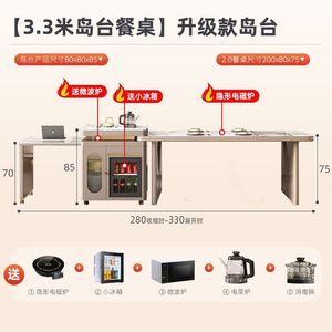 轻奢岛台餐桌一体可伸缩多功能餐桌椅组合家用现代简约带冰箱