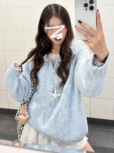 蓝色麻花翻领毛衣女2025新款奶fufu慵懒风韩系秋冬季穿搭针织上衣