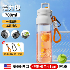美国进口Tritan【白橙700ml】送登山扣+杯刷+吸管刷..