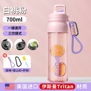 美国进口Tritan【桃粉700ml】送登山扣+杯刷+吸管刷.