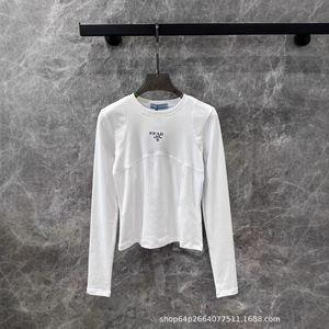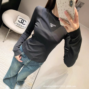 南油女装Pra 25秋冬新款字母印花简约百搭长袖T恤修身打底衫圆领