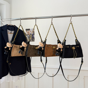 2025秋季新款麂皮磨砂皮复古单肩腋下包流浪包翻毛皮水桶包斜挎包