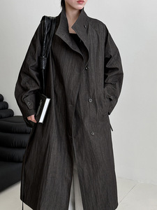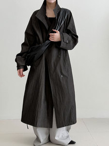 鹿西复古英伦风立领系带中长款风衣外套女秋季新款极简高级感2047