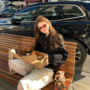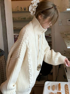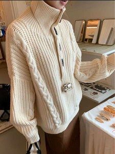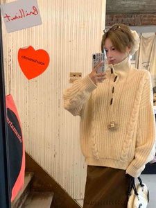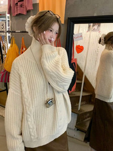 韩系复古麻花高领套头毛衣女秋冬宽松慵懒高级感软糯中长款针织衫