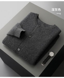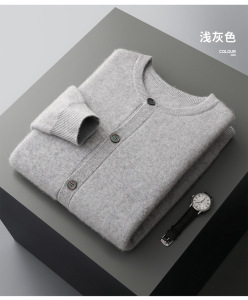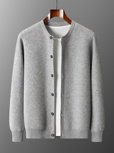 四平加厚系扣100%澳洲羊毛开衫男士圆领针织保暖毛衣外套河北工厂