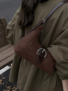 超火小众麂皮绒包包2025秋冬季新款女式斜挎包复古百搭单肩腋下包