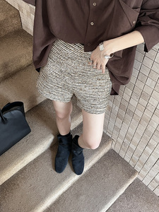 初打十三行秋季新款法式粗花小香风高腰显瘦通勤百搭短裤女KA746