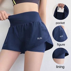 健身短裤女假两件运动防走光高腰瑜伽显瘦透气跑步冰丝休闲裤夏季