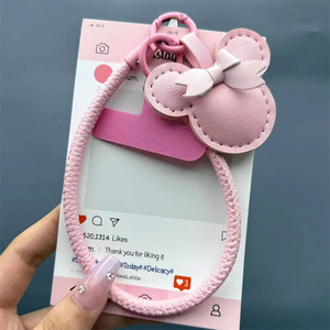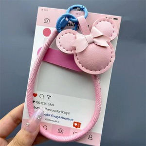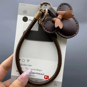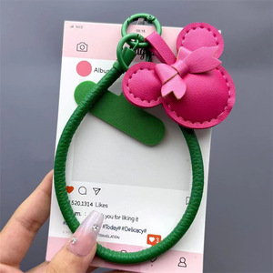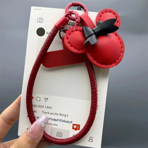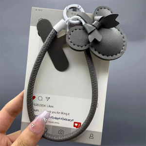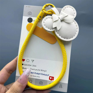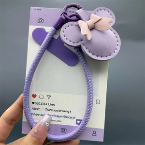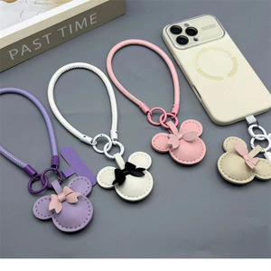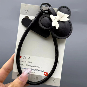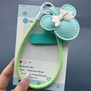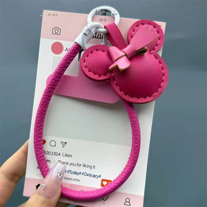 皮质手机挂绳卡通米奇鼠头蝴蝶结挂件手腕短款送垫片钥匙扣包防丢