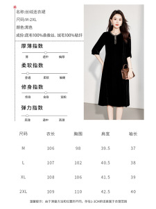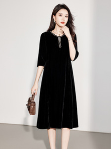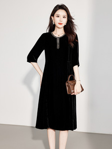 高端真丝丝绒连衣裙女2025秋冬新款小个子黑色修身显瘦桑蚕丝裙子