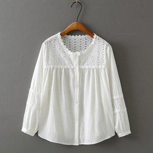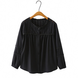 2025秋胖妹衬衫长袖钩花拼接上衣百搭气质开衫时尚大码衬衣815